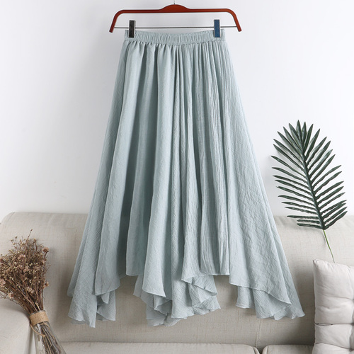 Linen Skirt Women's Spring Summer Women Midi Solid Color Wild Irregular Pleated Blue Black Big Swing Fishtail Skirt