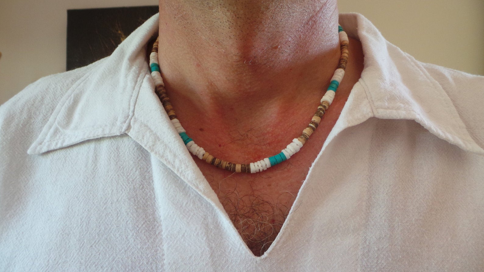 Mens beaded necklace. Mens surfer necklace.Surfer necklace. Brown beaded necklace. Mens coconut necklace