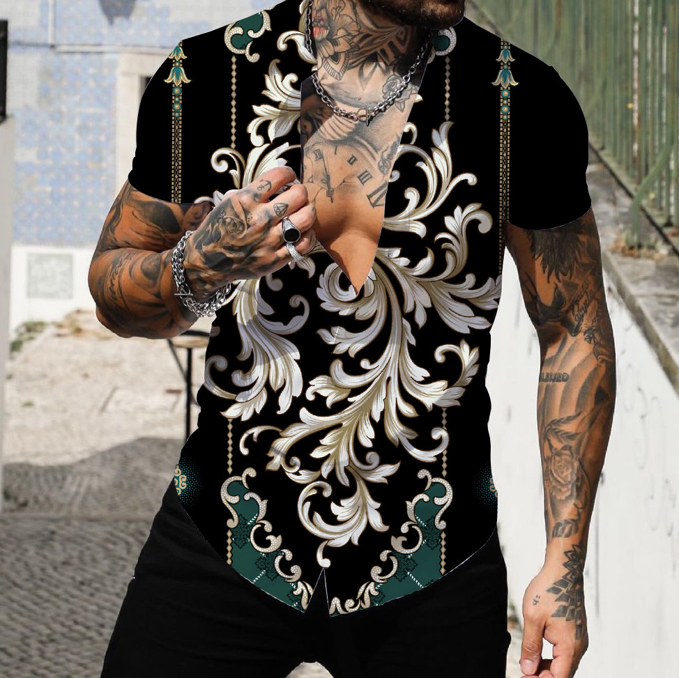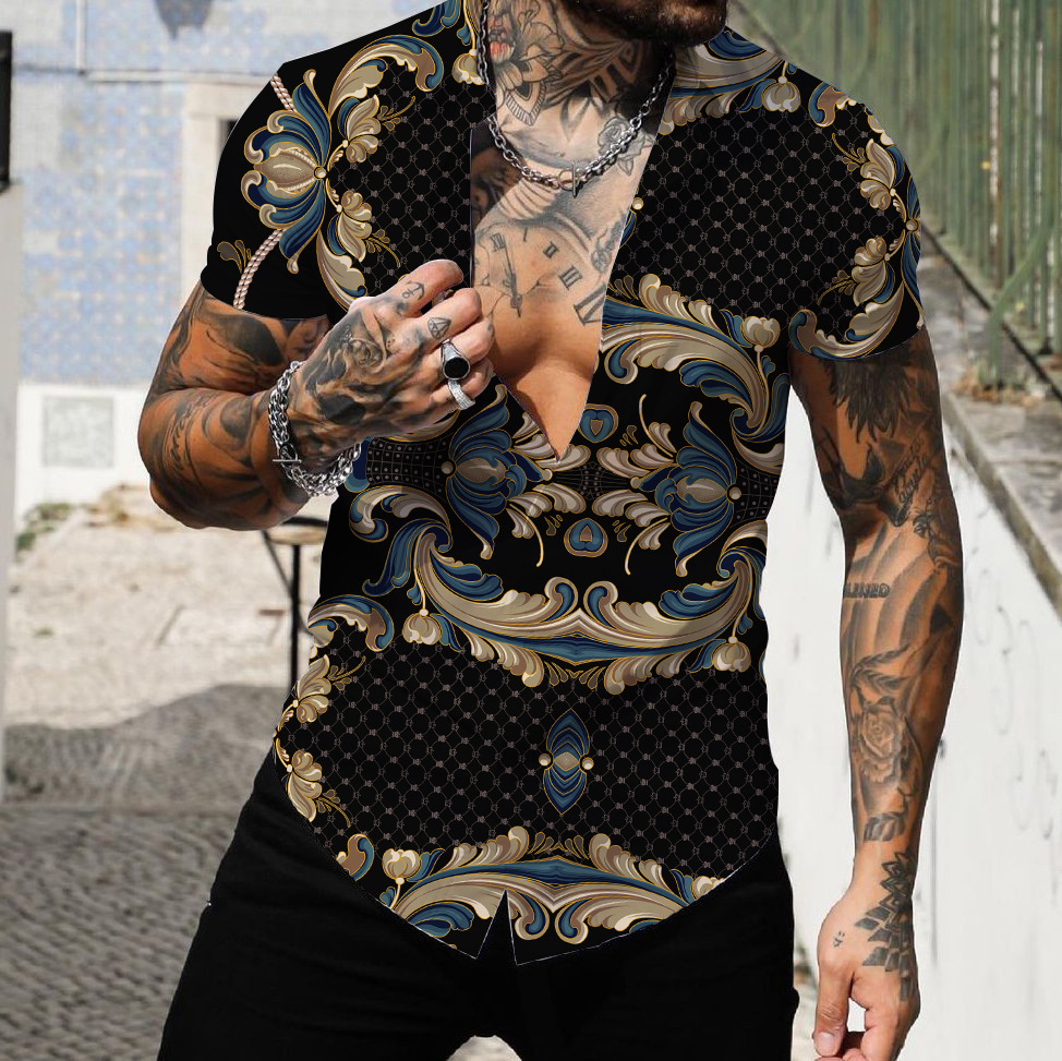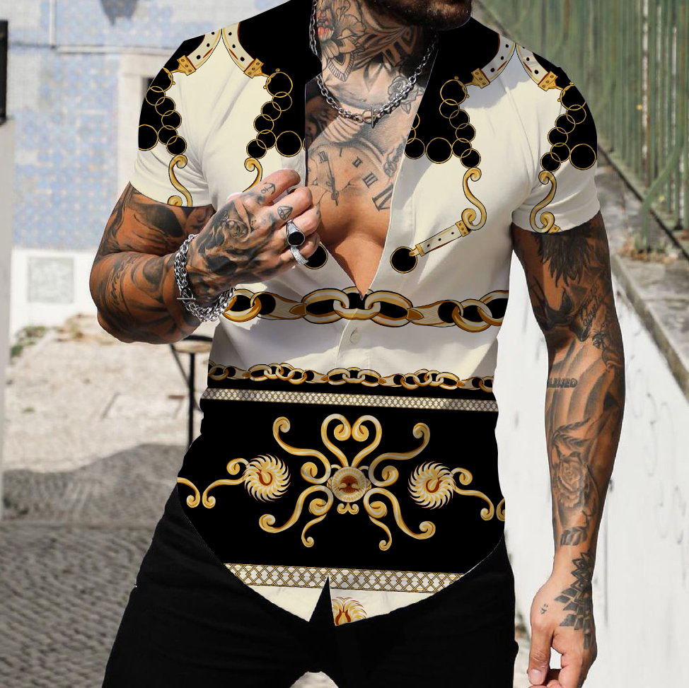 Mens Clothing Social Shirt Male Casual Shirts Letter Printed Chemise Streetwear Cardigan Short Sleeve Dress Shirt