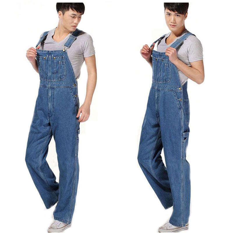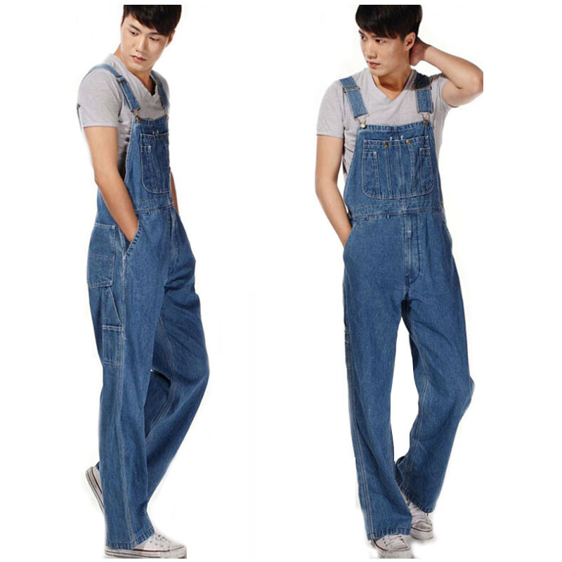 Men's Plus Size 26-40 42 44 46 Overalls Large Size Huge Denim Bib Pants Pocket Jumpsuits Free Shipping