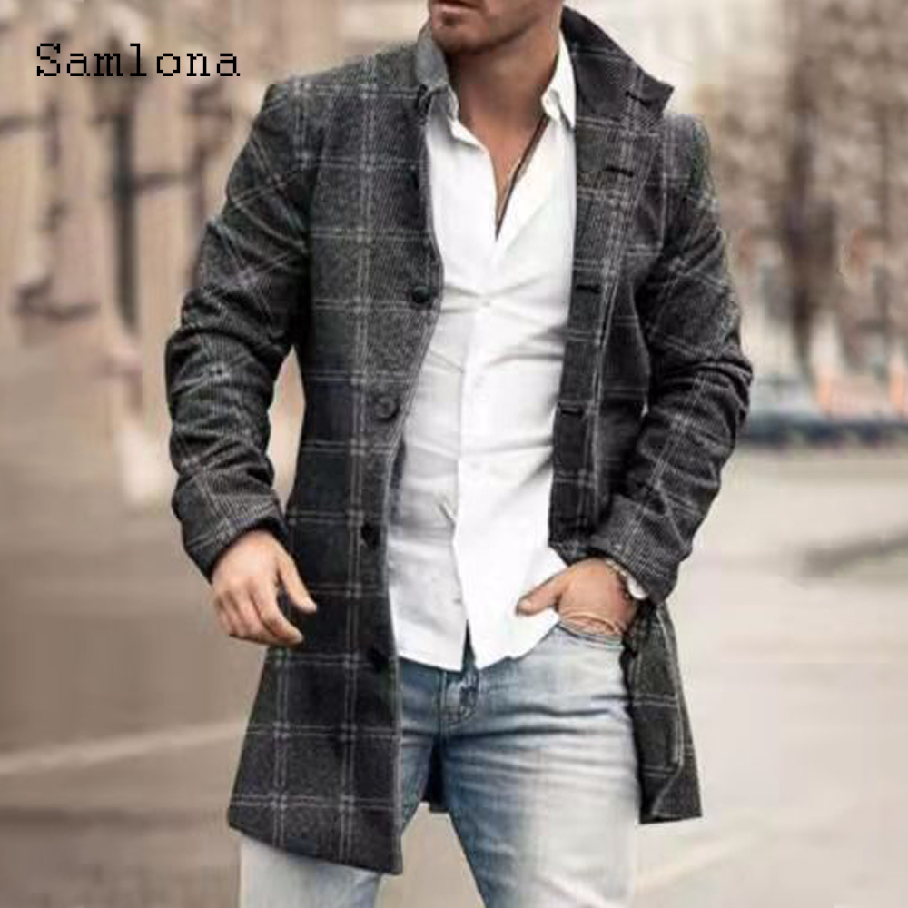 Mens Single-Breasted Wool & Blend Coats Autumn Lapel Collar retro Jacket Long Tops Outerwear Sexy Long Overcoat