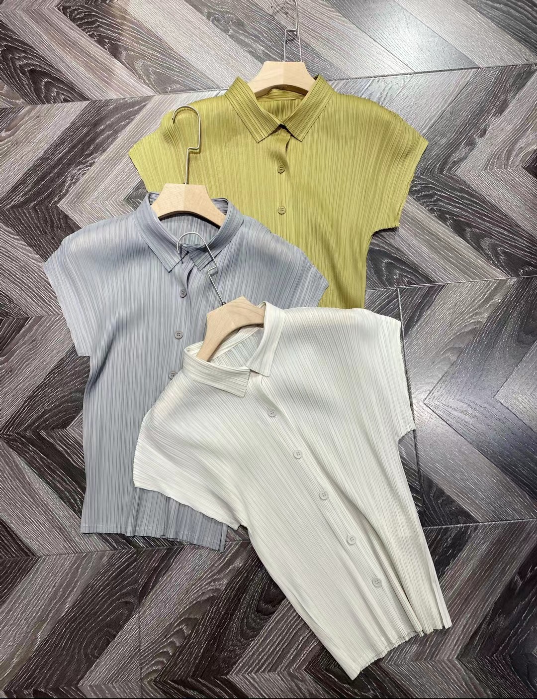 Miyake Pleated Tops Women Casual White Polo Lapel Short Sleeve Shirt Designer Clothes