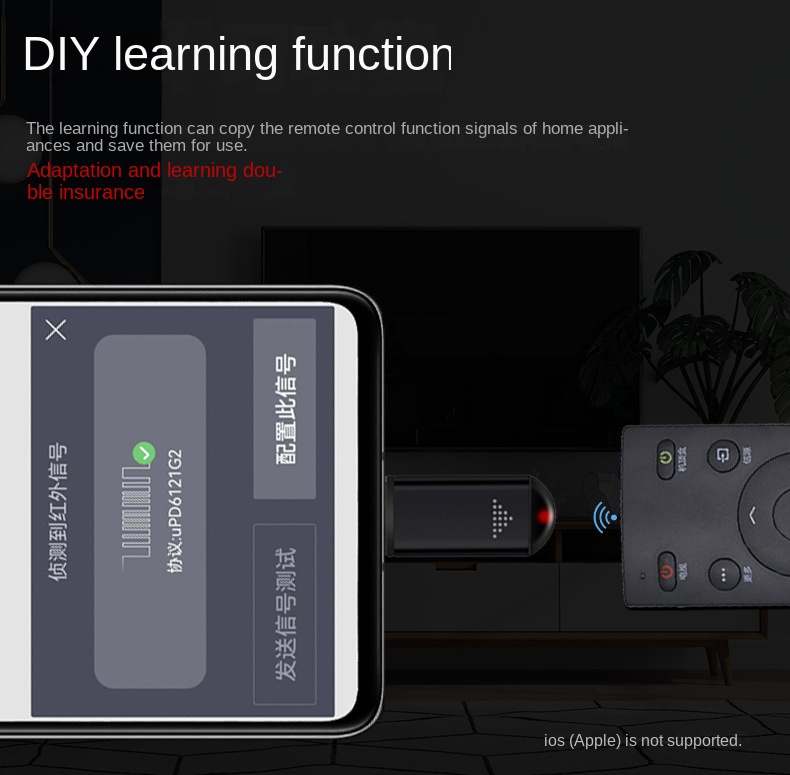 Android TypeC and Micro versions support all Android mobile phones with OTG function. Note that mobile phones need to support OTG function (OTG is the abbreviation of On-The-Go, which is mainly used for connection between various devices or mobile devices for data exchange) . Some brands of mobile phones need to manually open the OTG function (opening method: Settings - Other Settings - Turn on the OTG switch), such as Vivo, OPPO mobile phones. The Android version has a learning function, which can learn the remote control code of the remote control that the current code library does not have.