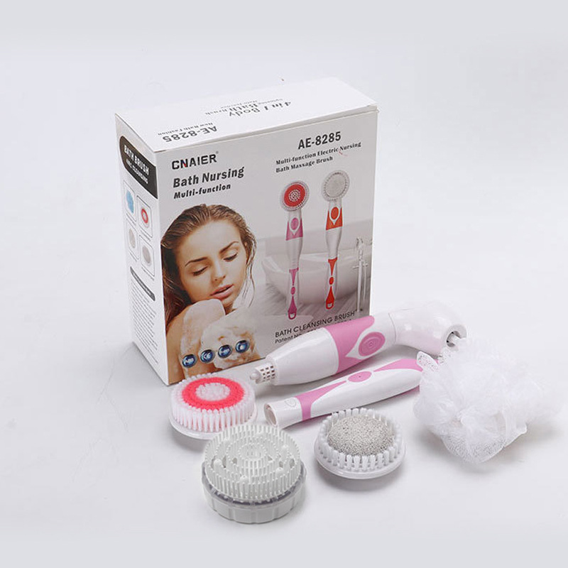 Note: The electric bath brush is composed of a brush head, a handle and a battery cover. It has the functions of rotating the brush with fast, medium and slow motor oscillation, pushing the brush up and down, and replacing the brush head. Purpose. The utility model has reasonable design, simple structure and integrated multi-function, which can not only help people to clean their backs, but also the vibration and massage functions of the motor can eliminate the fatigue of the human body, so that one can enjoy a comfortable bathing pleasure
