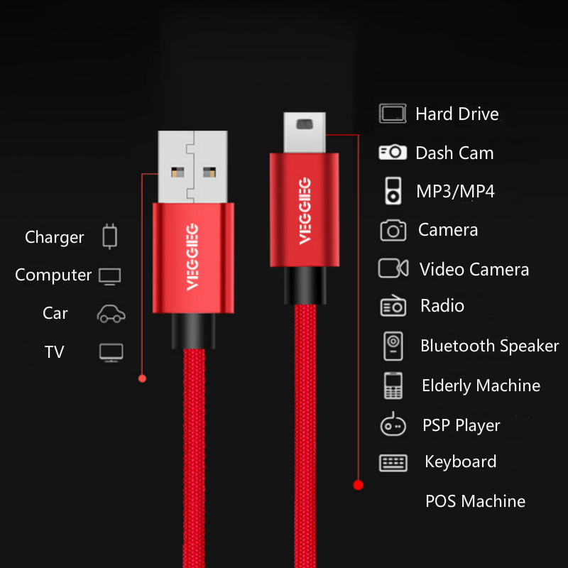 Feature 1 : USB Type A 2.0 to USB Mini-B Charger Cord