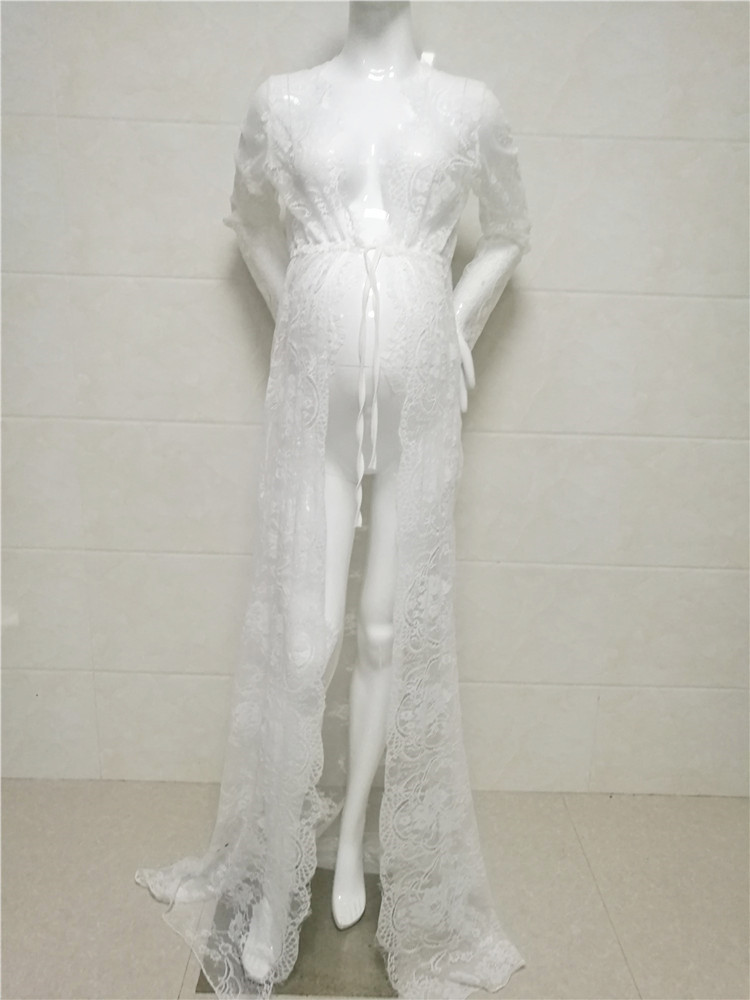 Off White Matenity Gown Photo Shoot Maternity Photography Props Lace Dresses Floor Length Lace Maternity Maxi Dress See Through