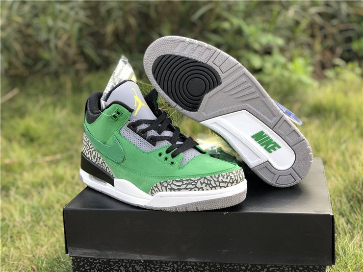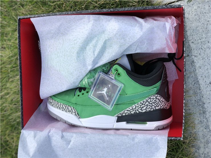 PK AIR JORDAN 3 OREGON BLACK DARK GREY GREEN 3M REFLECTIVE
