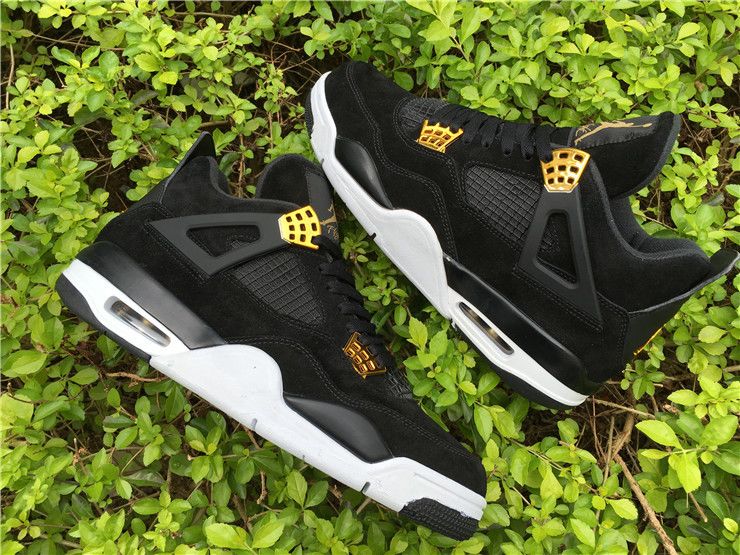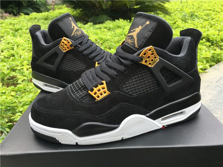 PK AIR JORDAN 4 RETRO ROYALTY BLACK SUEDE METALLIC GOLD