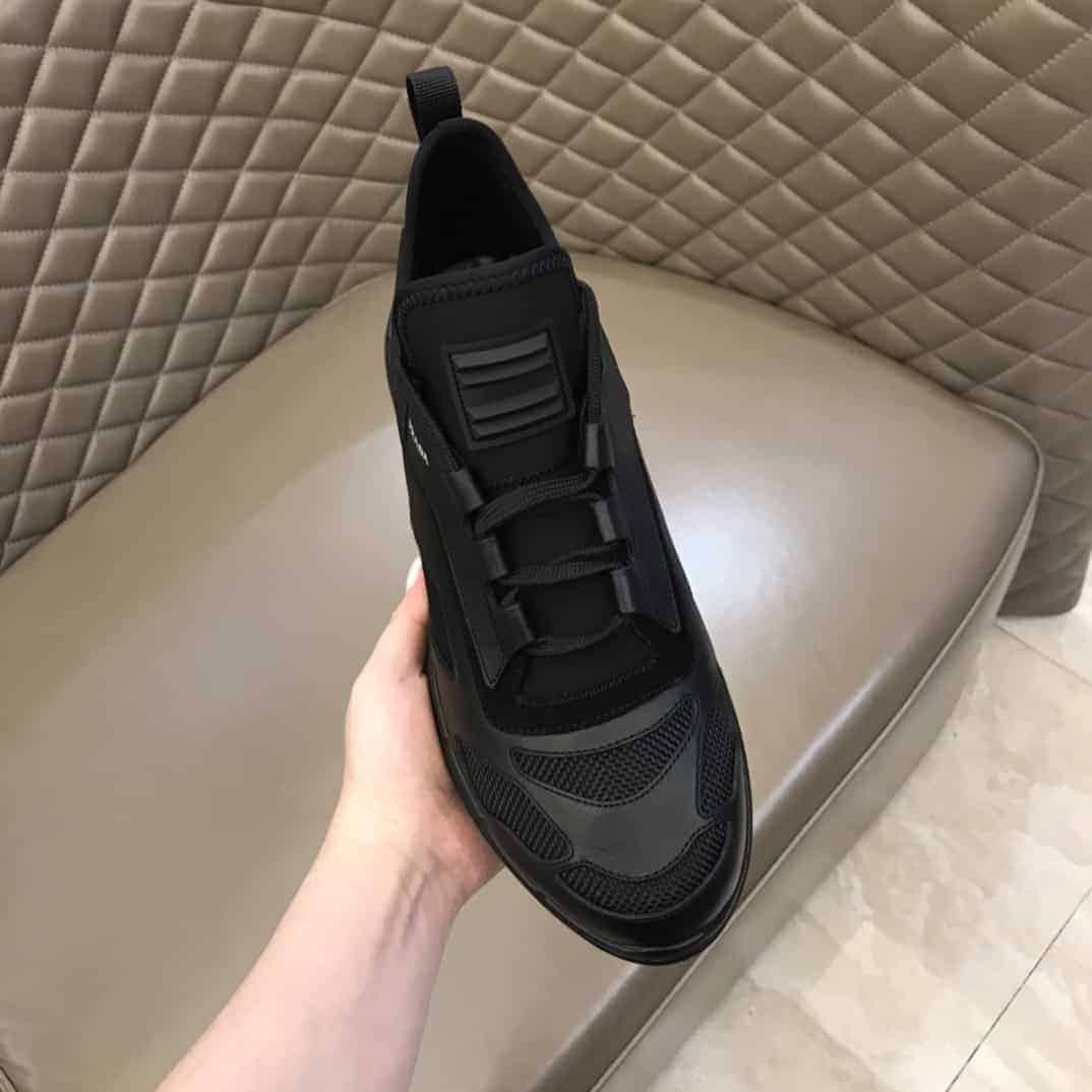 PRADA MACRO RE-NYLON AND BRUSHED LEATHER SNEAKERS – PD023