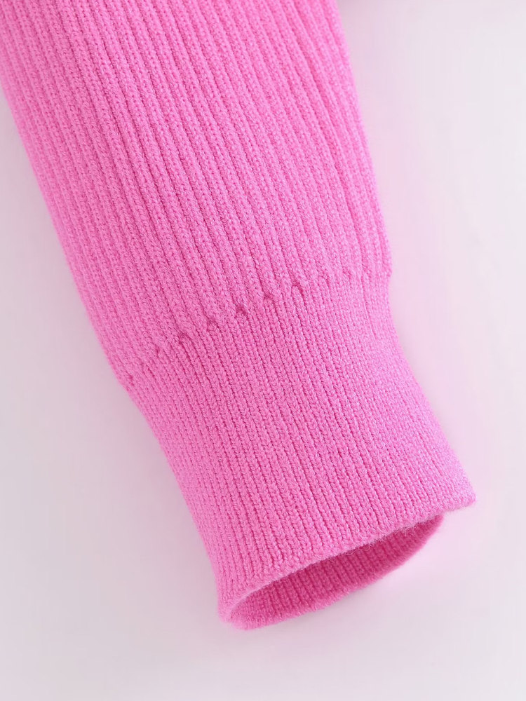 PUWD Women Pink Turndown Collar Contrast Color Cardigan 2022 Autumn Winter Fashion Girls Casual Female Long Sleeve Zipper Sweater