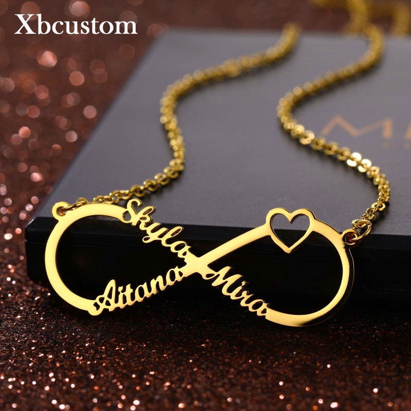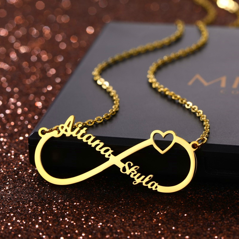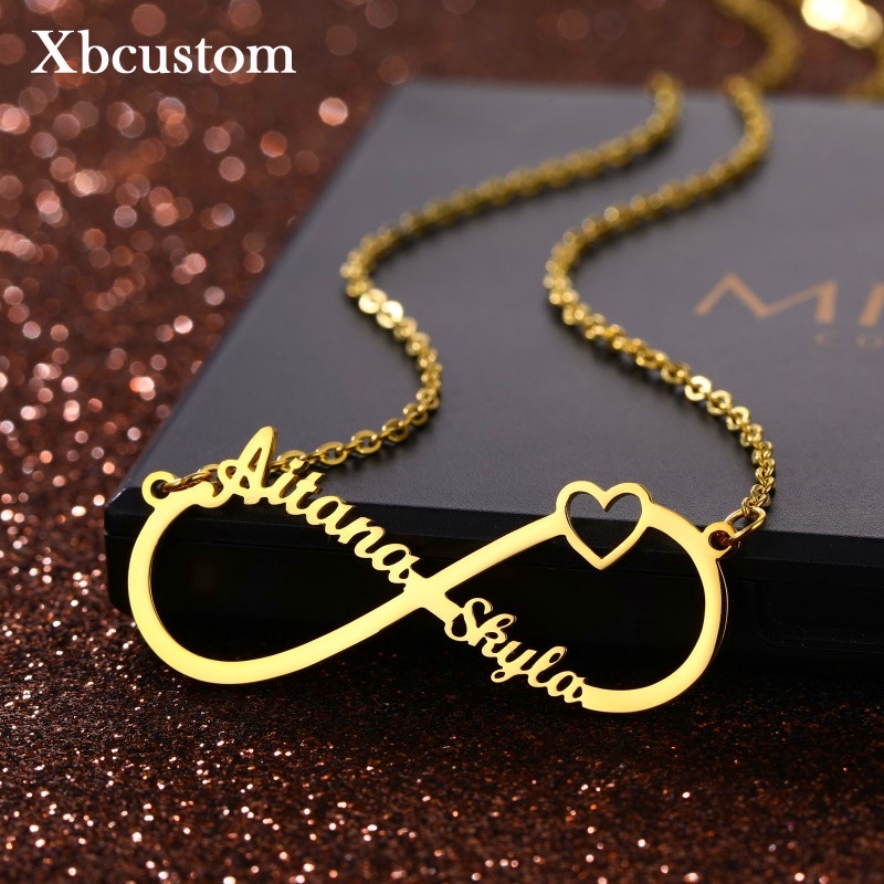 Personalized Pendant Name Necklace Infinity Women Men Gold Stainless Steel Chain Custom Couple Nameplate with Heart Jewelry Gift