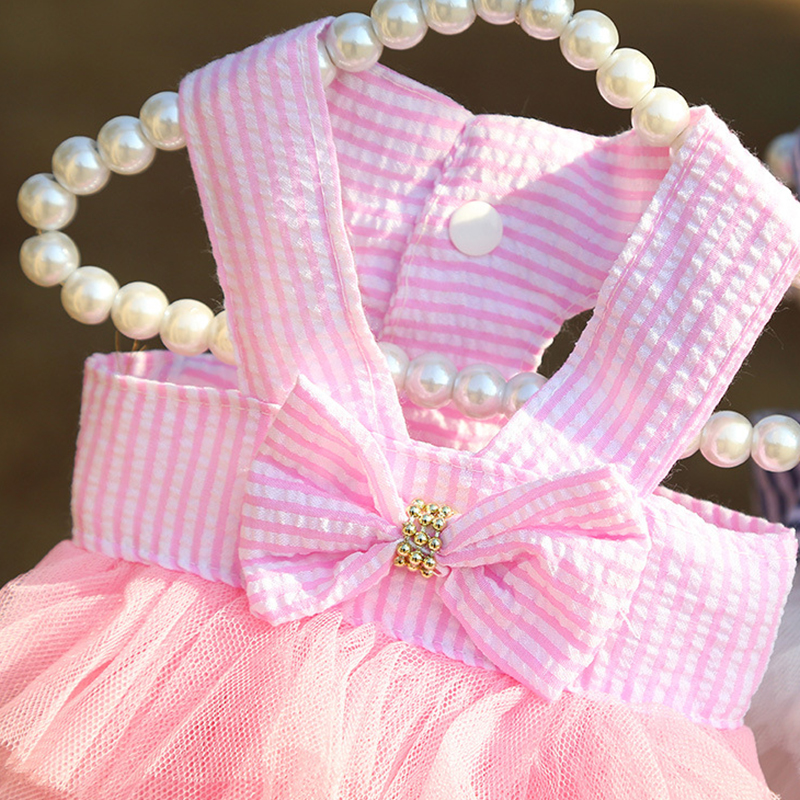 Pet striped sling mesh skirt,polyester material,comfortable and skin-friendly fabric.Princess style,cute and sweet,pets are even more cute and sweet after wearing them.