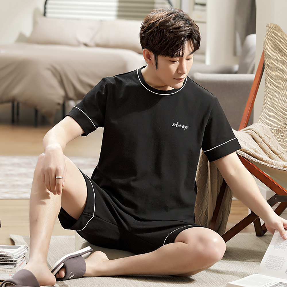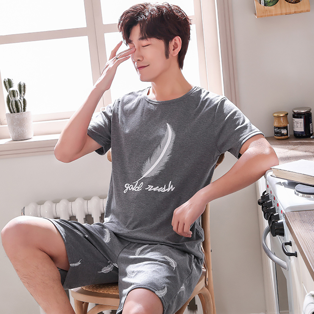 Plus Size Pajamas For Men Casual Cotton Print Pajama Sets Summer Short Sleeve Pijama+Elastic Striped Shorts Home Suit Pyjamas