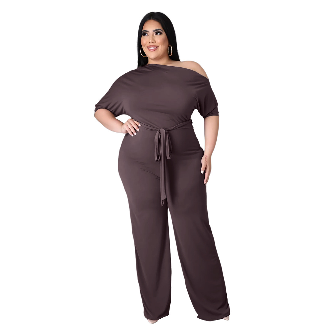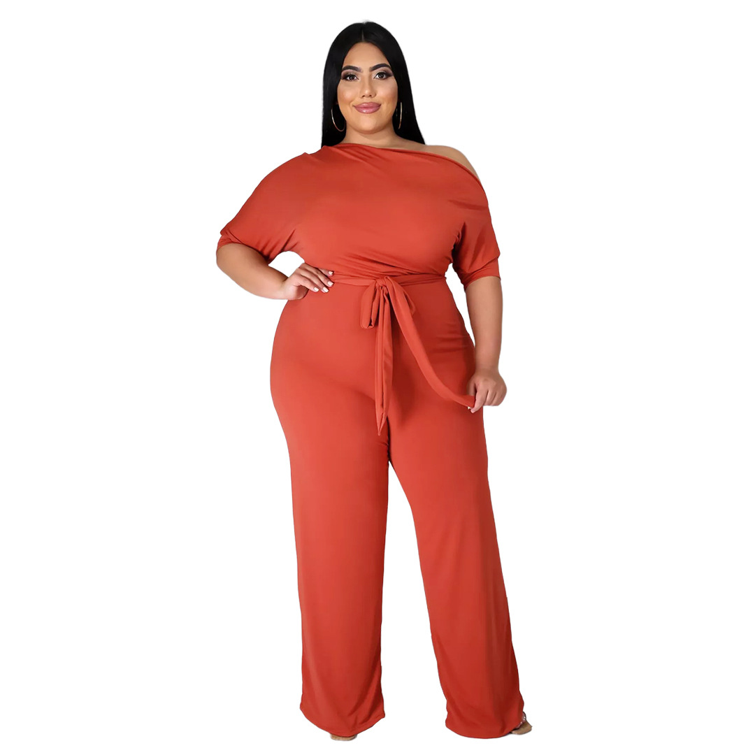 Plus Size Women Clothing Off Shoulder Bodycon Lace Up Jumpsuit Solid Color Ruched Wide Leg Pants Set Summer Outfits