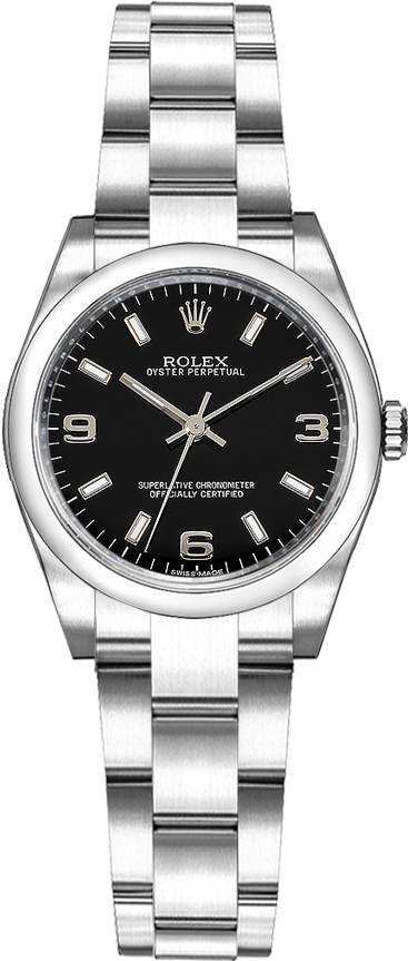 26mm = 1″ Case, 6″ Adjustable Bracelet Inlet Size: 13mm Fixed Bezel Luminescent Hands & Hour Markers Screw Down Crown & Case Back 904L Oystersteel Stainless Steel Oysterclasp Deployment BuckleMovement:Automatic