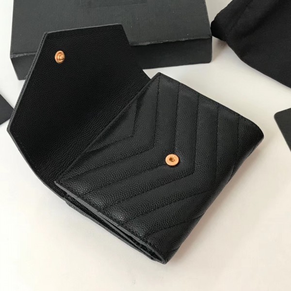 The Compact Tri Fold wallet looks chic in grain de poudre embossed leather, which is finished with interlaced YSL metal initials. Small enough to fit into even a tiny bag or clutch, yet with space for coins, notes and credit cards, this neat wallet is the ultimate mini companion.