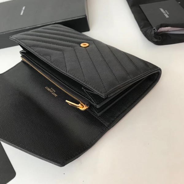 Saint Laurent Large Monogram Flap Wallet In Black Grained Leather