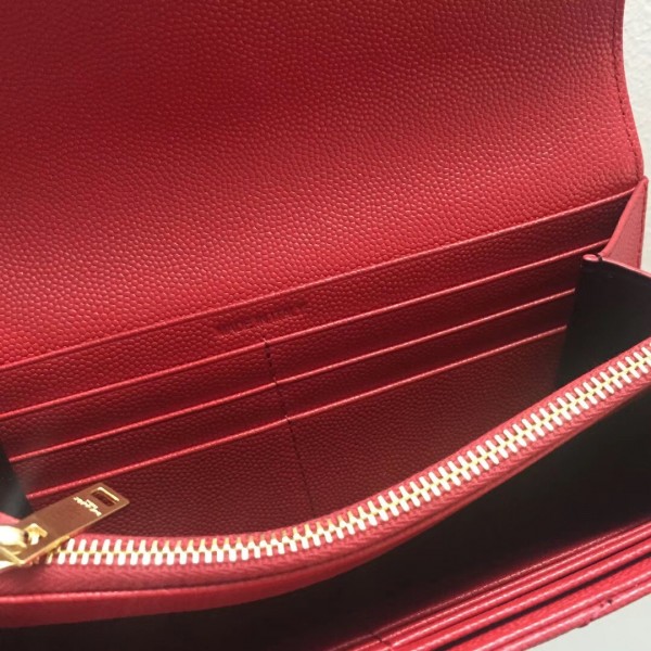 Indulge in this Saint Laurent large monogram wallet wallet to add the Parisian label’s hard-edged opulence to your ensemble. Crafted from grain de poudre embossed leather, this design features multiple card slots and a zipped interior compartment, perfect for securely storing your valuables. The chevron patterned luxurious quilting is punctuated by the iconic ‘YSL’ logo, reflecting the label’s timeless appeal.