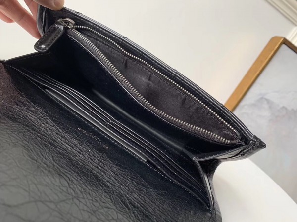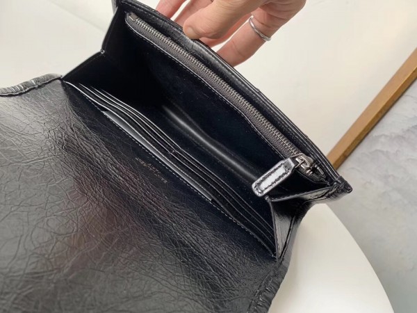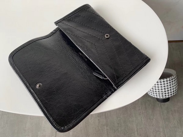 Inspired by the iconic Niki handbag, the Saint Laurent’s Niki large wallet in supple glossed-leather that’s crinkled to look somewhat vintage combines a functional design with fashion appeal. It’s embroidered with chevrons and decorated with iconic ‘YSL’ hardware. Sensorial yet functional, it is still large enough to fit all your daily essentials.