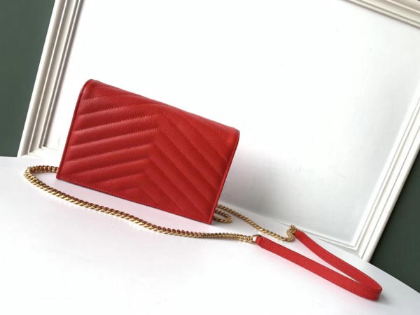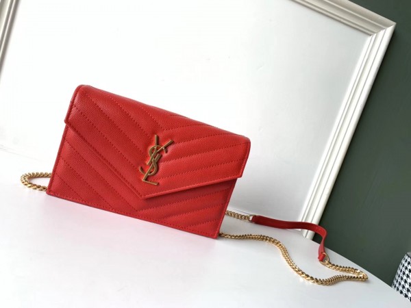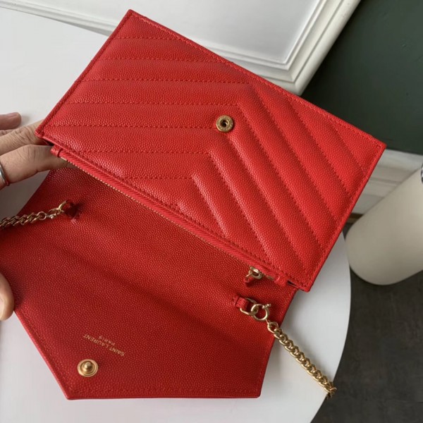 Saint Laurent WOC Envelope Chain Wallet In Red Leather