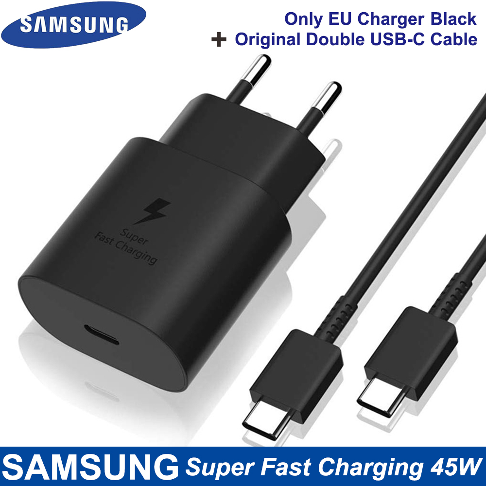 Samsung Original 45W Super Fast Charger Double Type-C Cable For Galaxy Note 10 Plus Note 10+ 5G USB C Fast Charging Wall Charger
