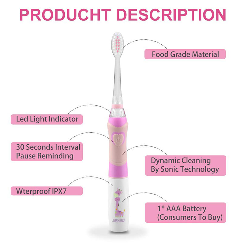 2.Seago's second electric toothbrush is designed for children! Our children's electric toothbrush can clean up to 24,000 times per minute, effectively eliminating tartar.Gentle vibrations can remove more plaque than a traditional manual toothbrush.