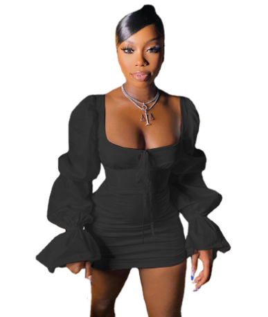 Sexy Puff Sleeve Bodycon Mini Dress Bandage Birthday Party Outfits for Women Backless Y2k Clothes Night Club Dresses