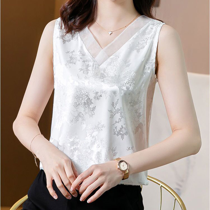 Silk Tops for Women Satin Mesh Female Tank Top Sexy V-neck Woman Vest White Basic Woman Top Sleeveless Women clothing