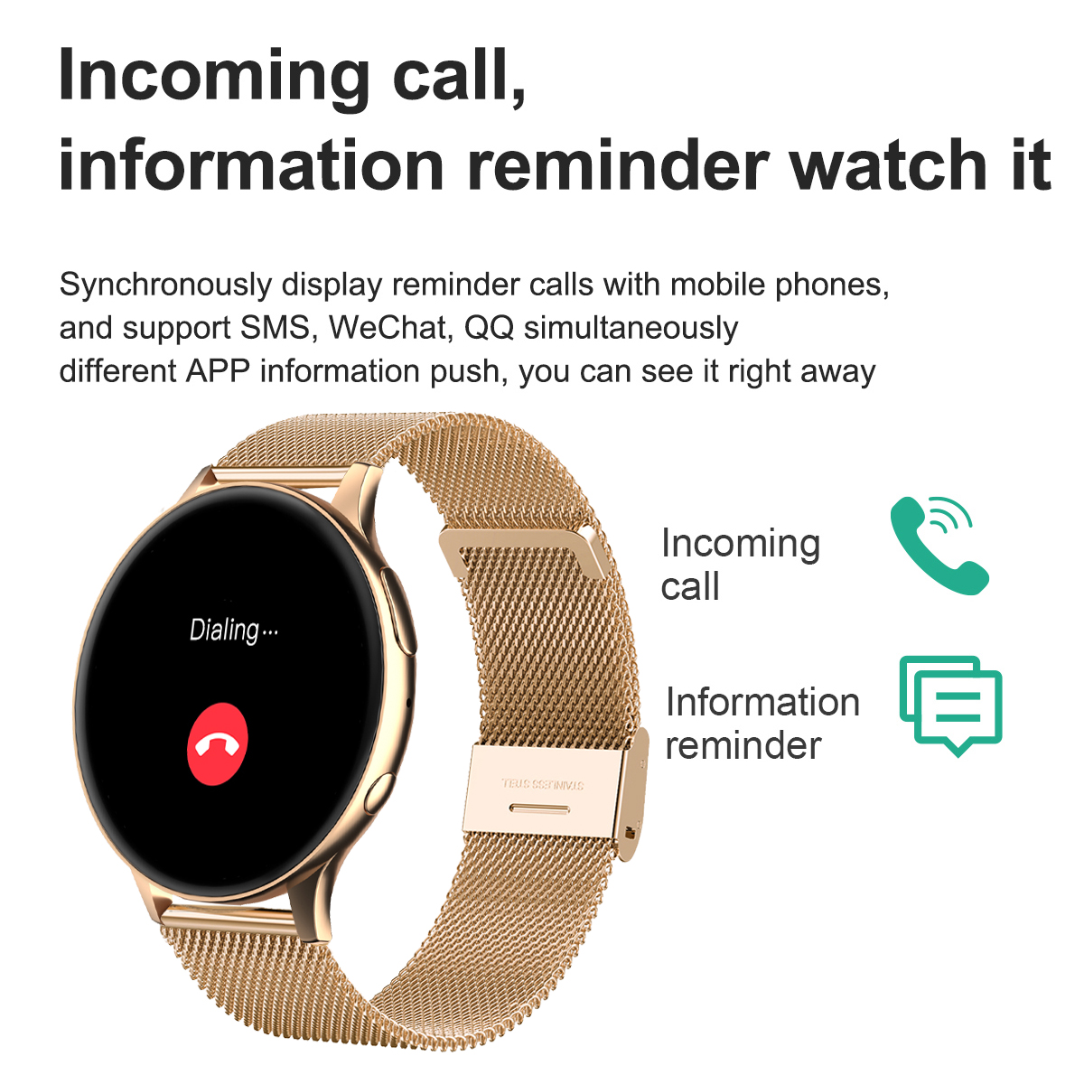 Answer: After connecting the watch to the mobile application, the watch will display information reminders and call reminders
