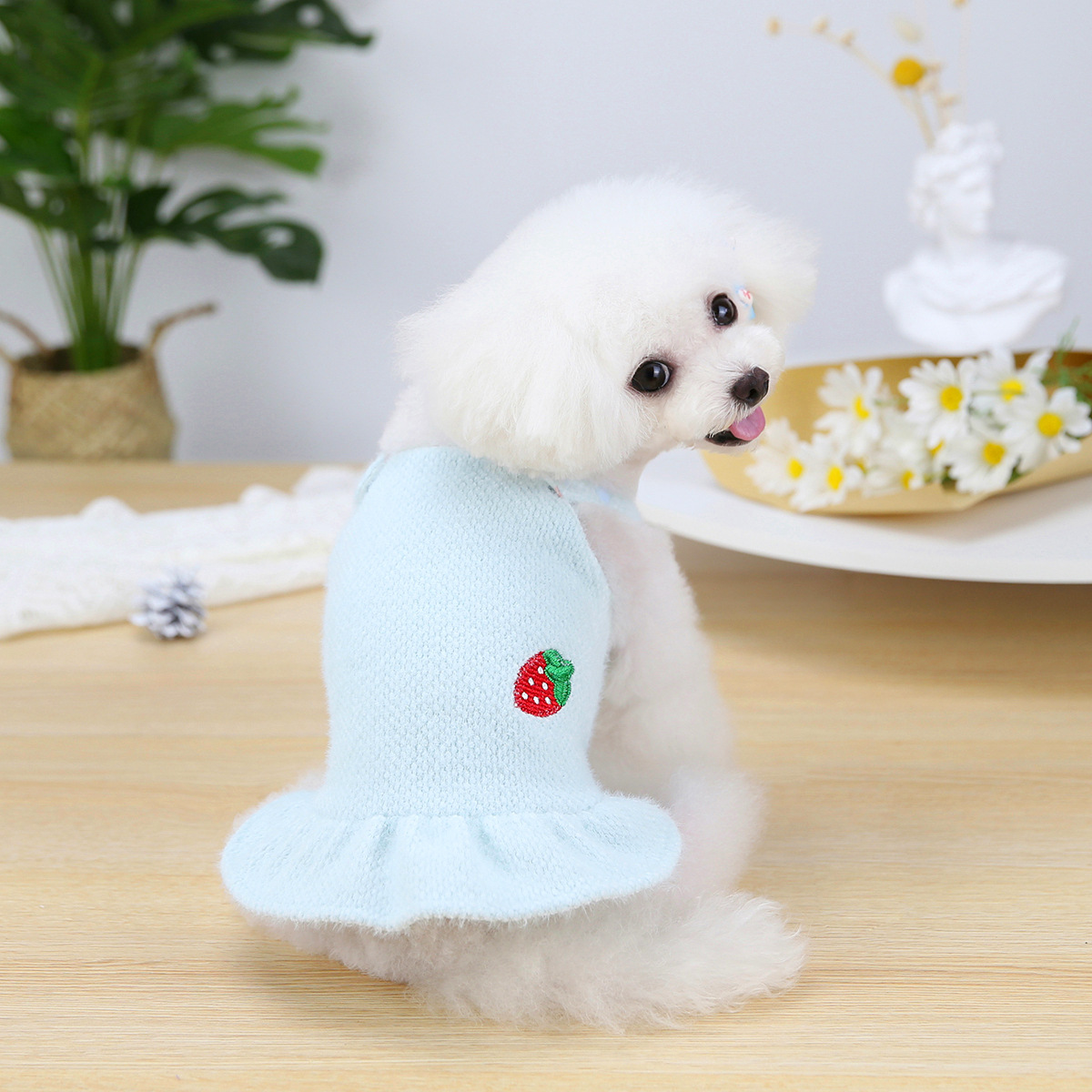 Soft Pet Dog Clothes for Small Dogs Princess Skirt Suspenders Dress For Chihuahua French Bulldog Warm Knitted Dog Sweater