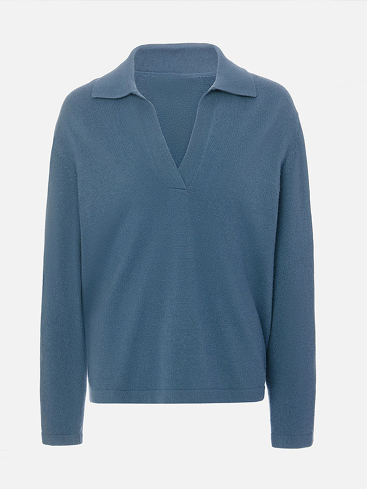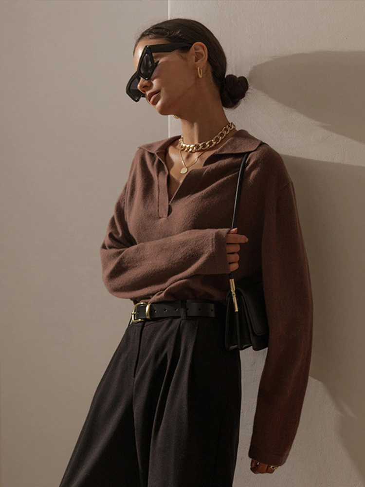 Model Number : Solid Lapel Women Long Sleeve Knitted Pullover