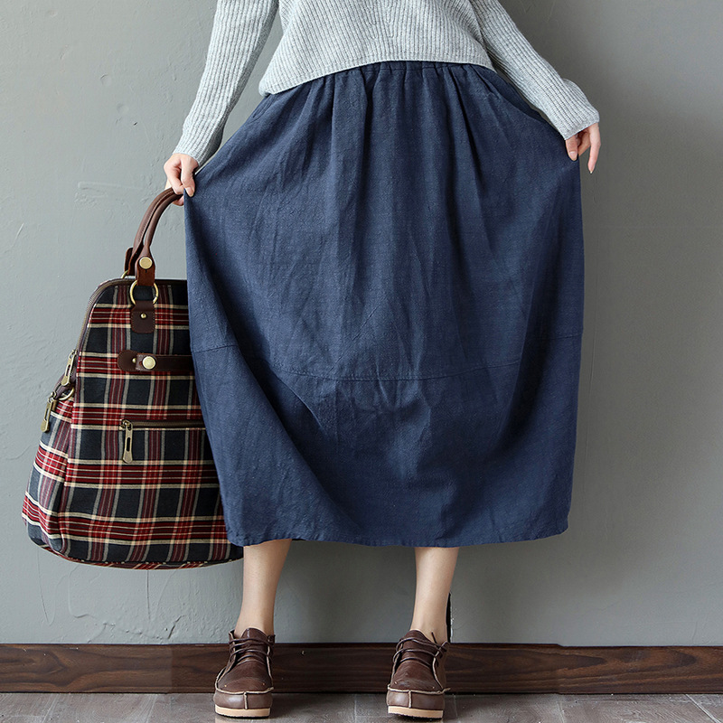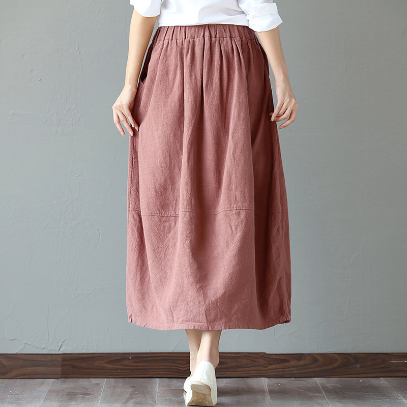 Spring Retro Literary Cotton-linen Skirt Model Half-length Skirt Flax Big-pendulum A-shaped Bud Lantern Skirt