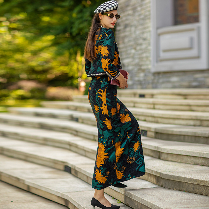 Spring Autumn Beading Suit Dress Women 2 Piece Set Blazer Women Straight Jacquard Dress for Women Suits Indie Folk