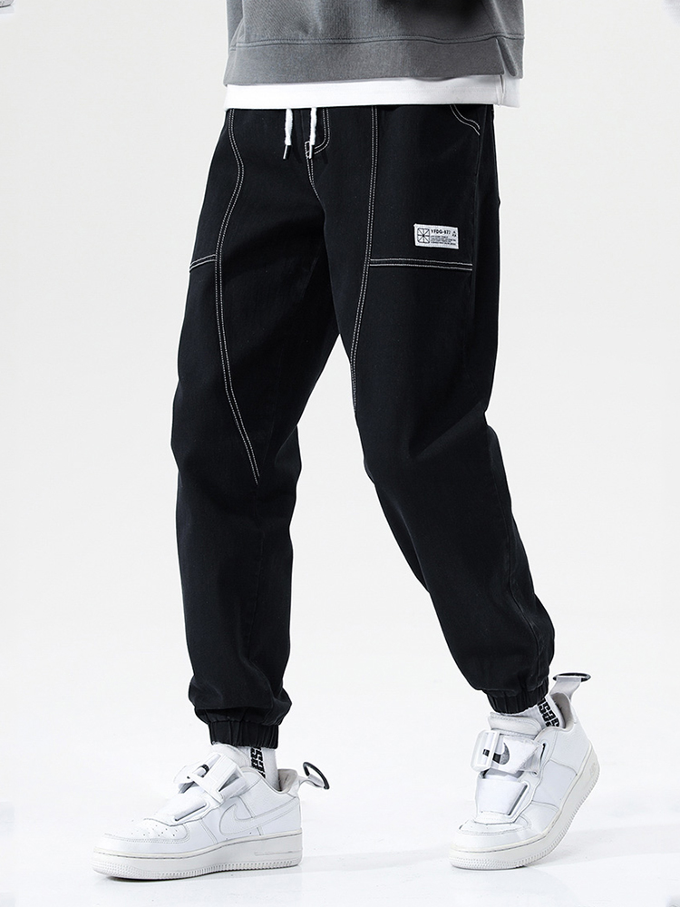Spring Summer Solid Cotton Baggy Jeans Men Stretch Denim Joggers Streetwear Ankle Length Casual Harem Jean Pants