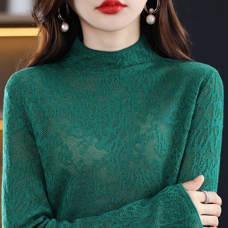 Spring and Autumn Three-dimensional Carved Half Turtleneck Lace Hollow Knitted Sweater Women's Pullover Sweater