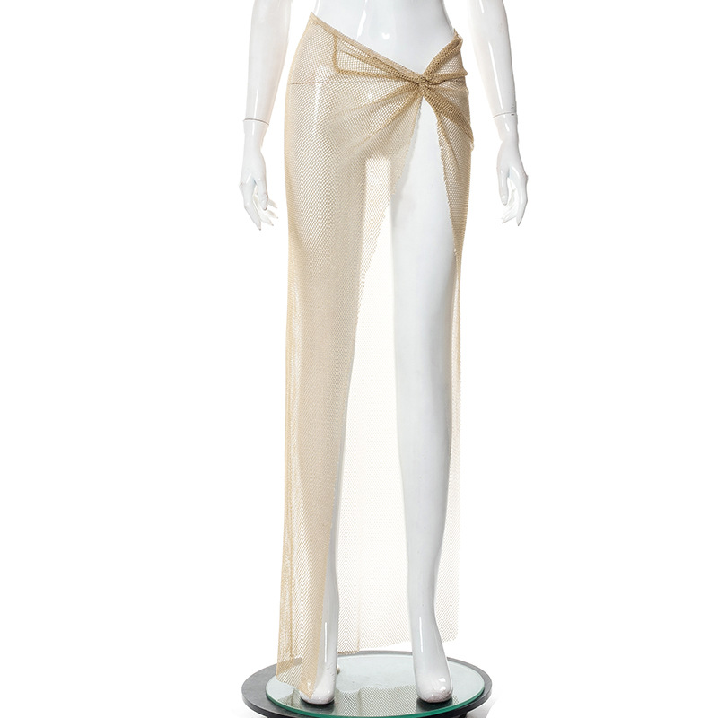 Summer Sexy High Waist Midi Skirt For Women Mesh Matching Split Transparent Lace Skirts Beach Vacation And Dress