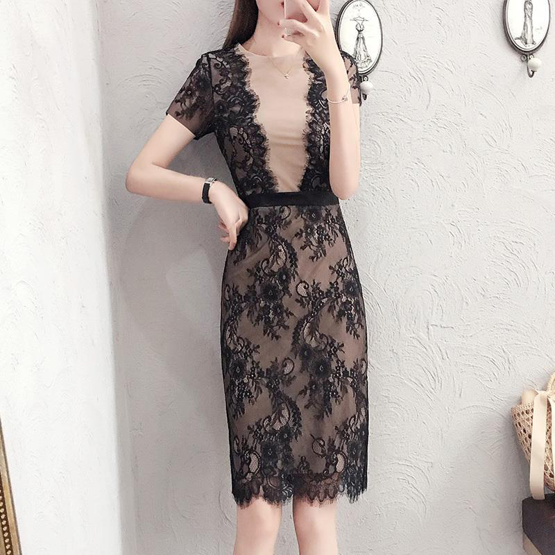 Summer Elegant Sexy Lace Patchwork Bodycon Dresses Women Short Sleeve Evening Party Dress Vestidos De Fiesta Robe