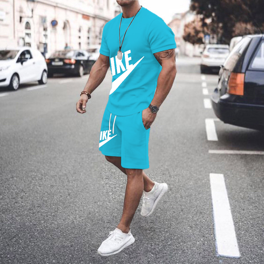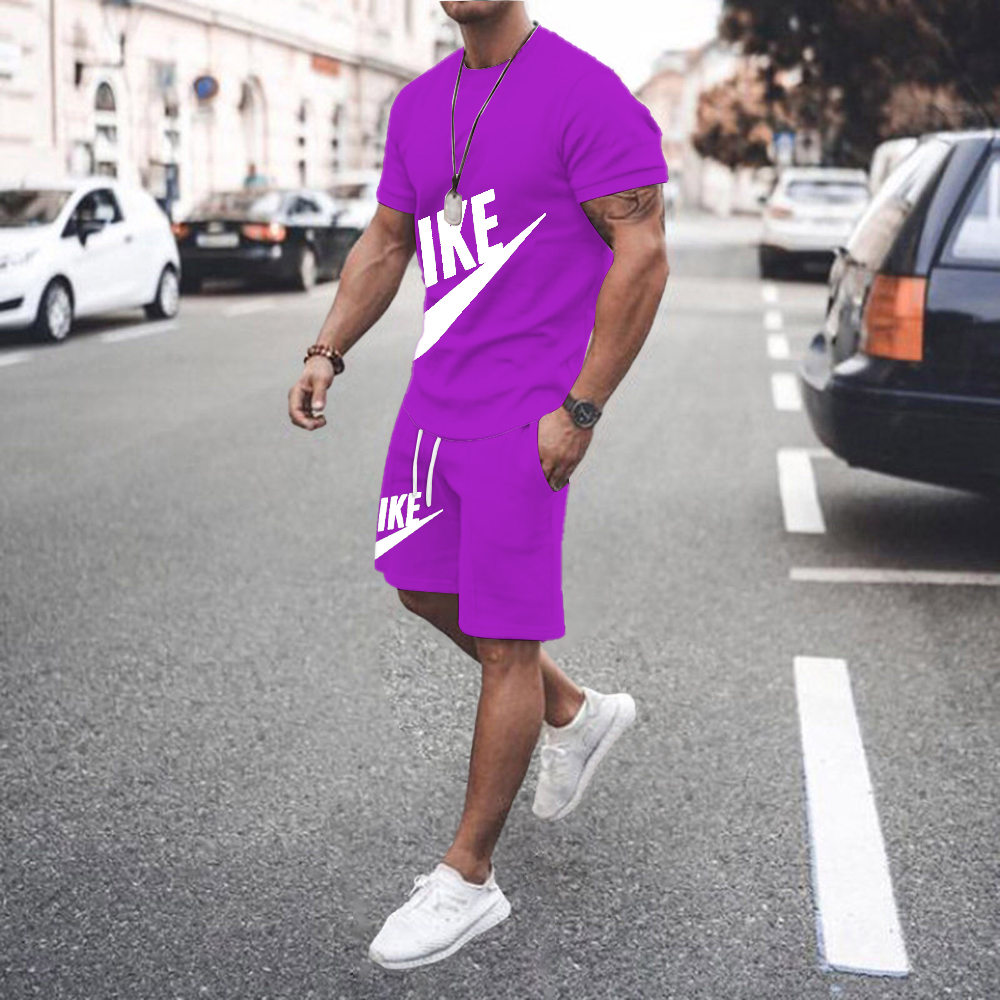 Summer Men's Fitness Men's Casual Sportswear Suit Oversized Sports Suit Short-Sleeved T-Shirt + Shorts 2-Piece Se