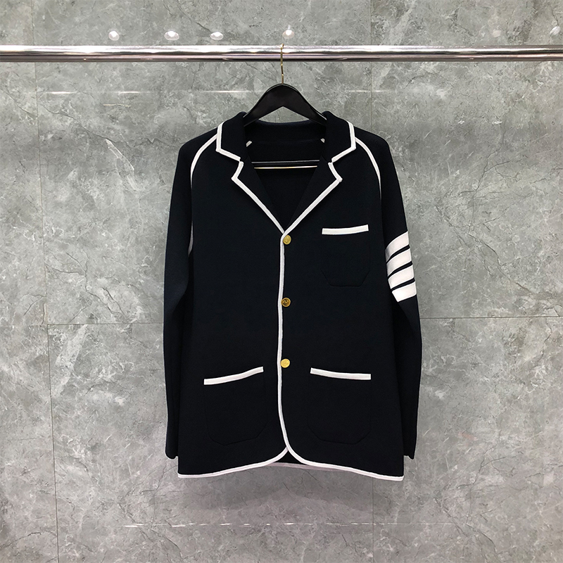TB THOM Suit Spring Winter Man Jacket Blazer White Grosgrain Tipping Knit Coat Custom WholeTB Formal Suit