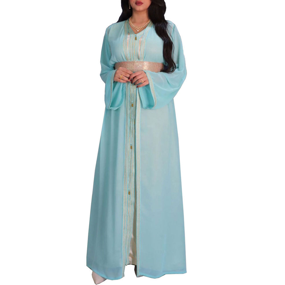 Tilapia Two Pieces Dress Gorgerous Diamond Wide Belt Chiffon Outfit Party Muslim Autumn Dress