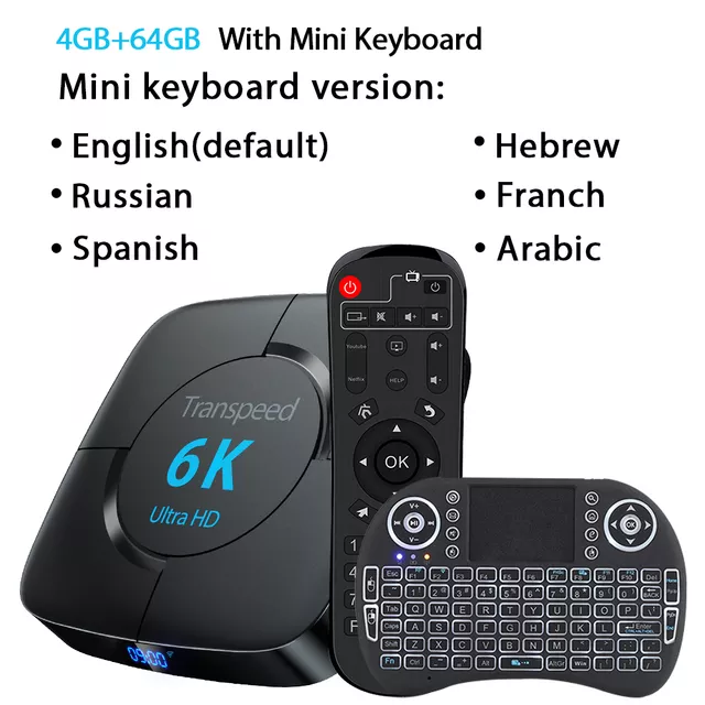 Transpeed Android 10.0 TV Box Voice Assistant 6K 3D Wifi 2.4G&5.8G 4GB RAM 64G Media player Very Fast Box Top Box