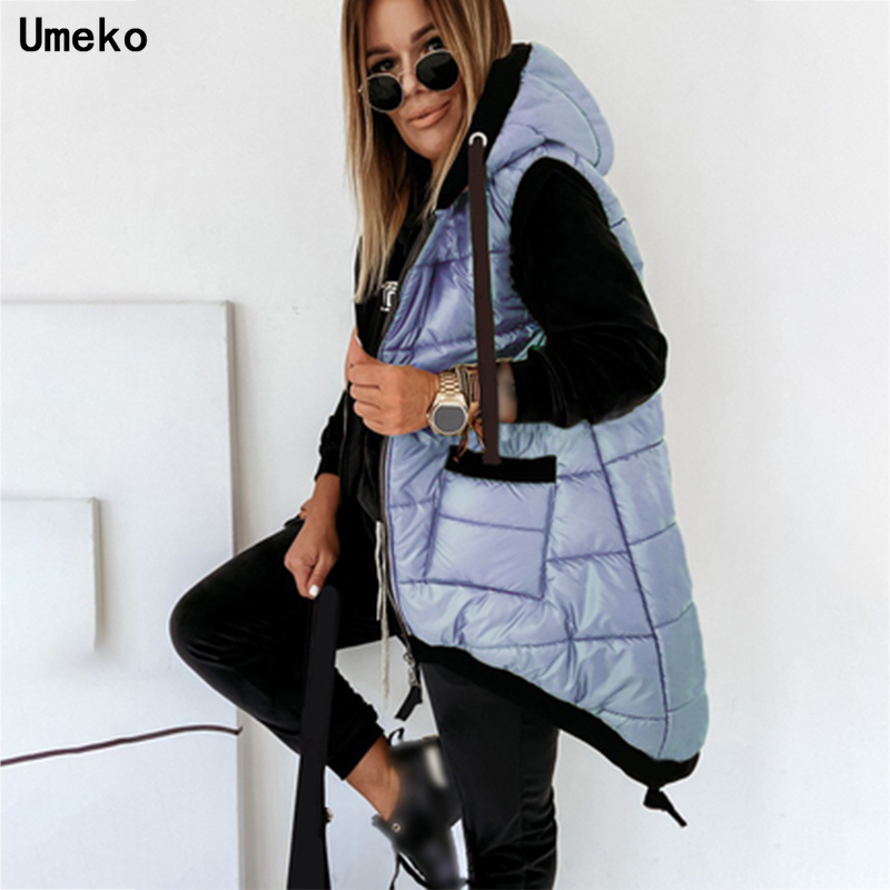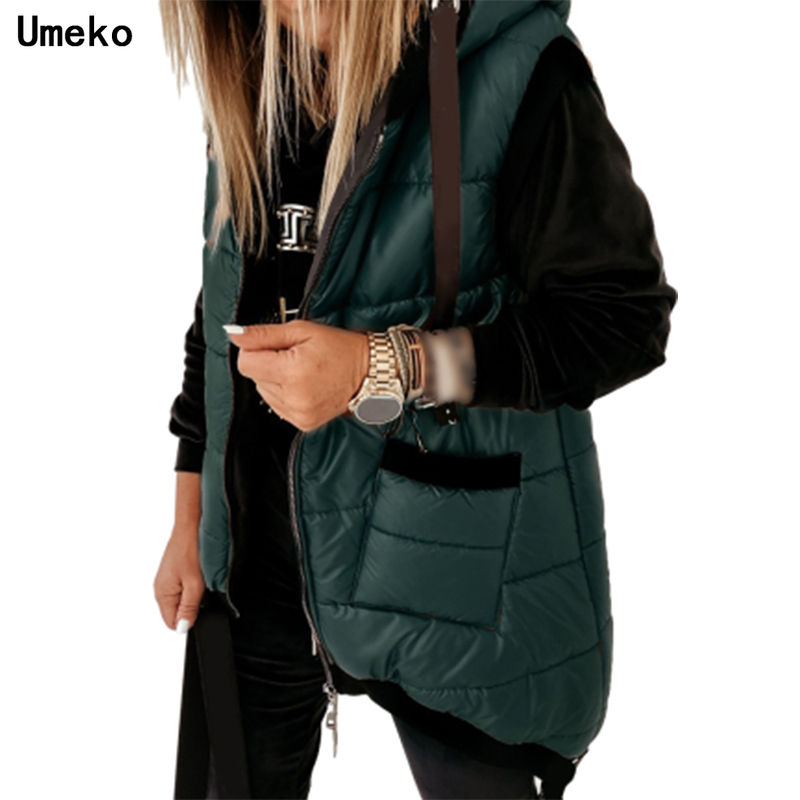 Umeko Women's Long Vest Hooded Autumn Winter Pockets Casual Ladies Sleeveless Jacket Solid Slim Waistcoat for Female