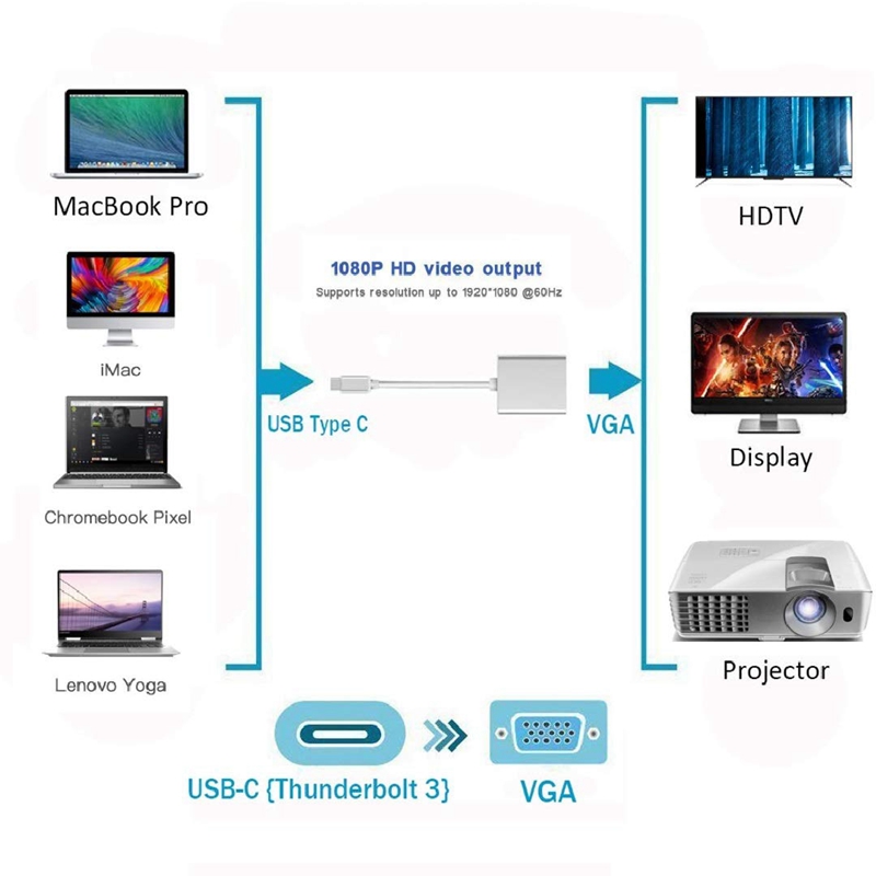 Plug and Play:No need driver to install. An perfect VGA Adapter for New Devices with USB-C/Type-C. Perfectly matches your , Chrombook Pixel and other devieces.