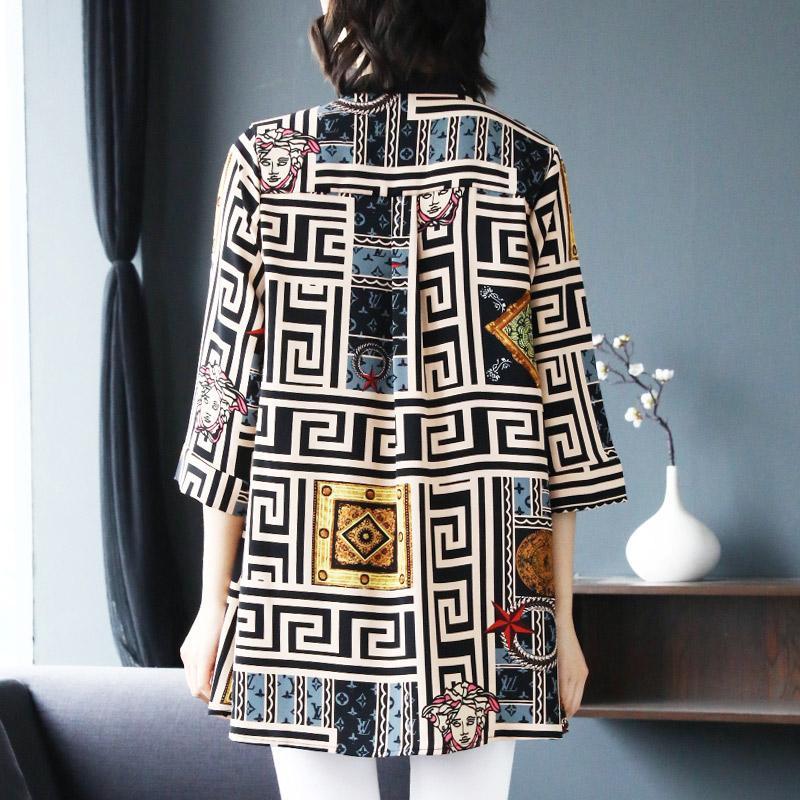 Vintage Casual Printing Button Long Shirt Summer Autumn Street Style O-Neck Three Quarter Sleeve Loose Tops Ladies Clothing