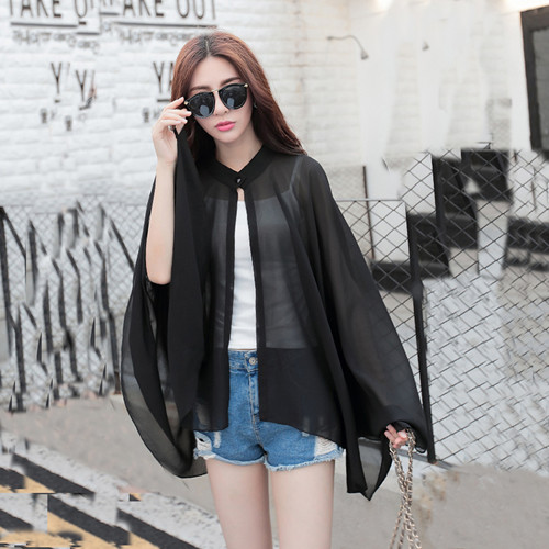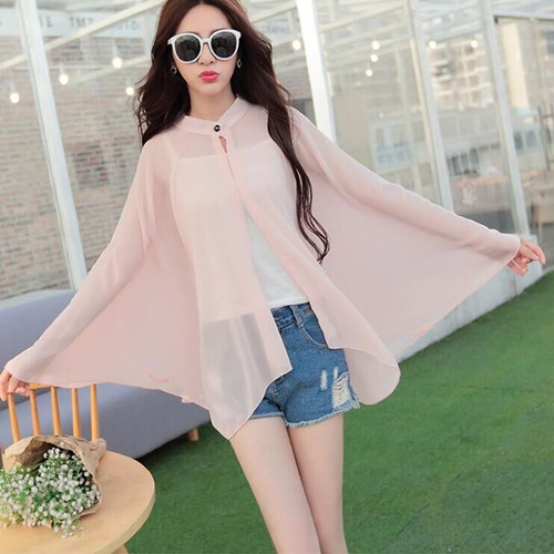 Women Chiffon Blouse Summer Sun Protection Tops Batwing Sleeve Loose Long Shirts Women's Beach Wear Open Stitch Cardigan