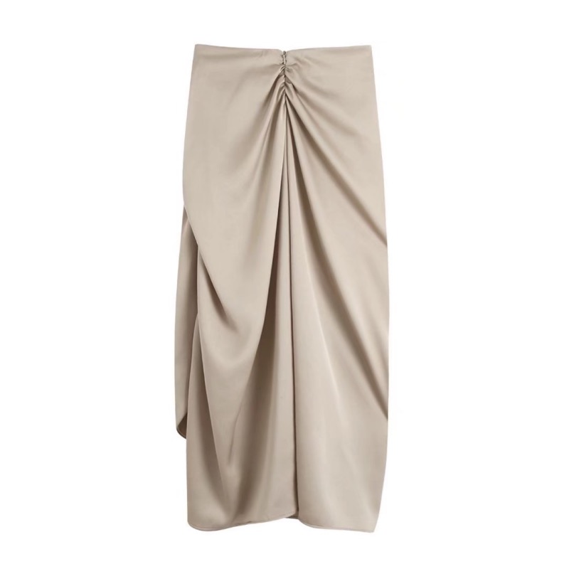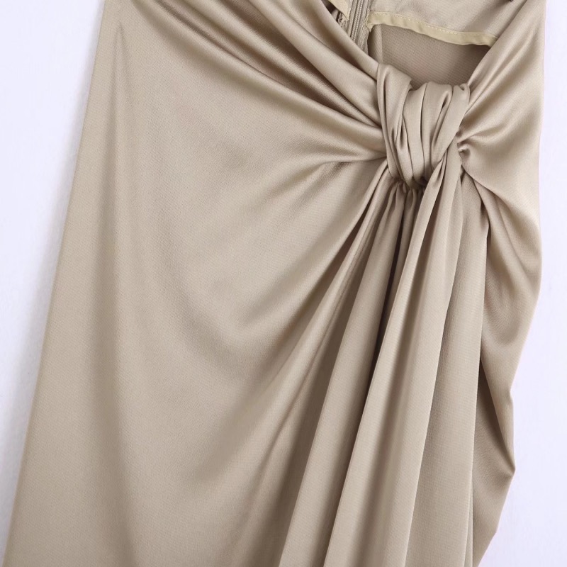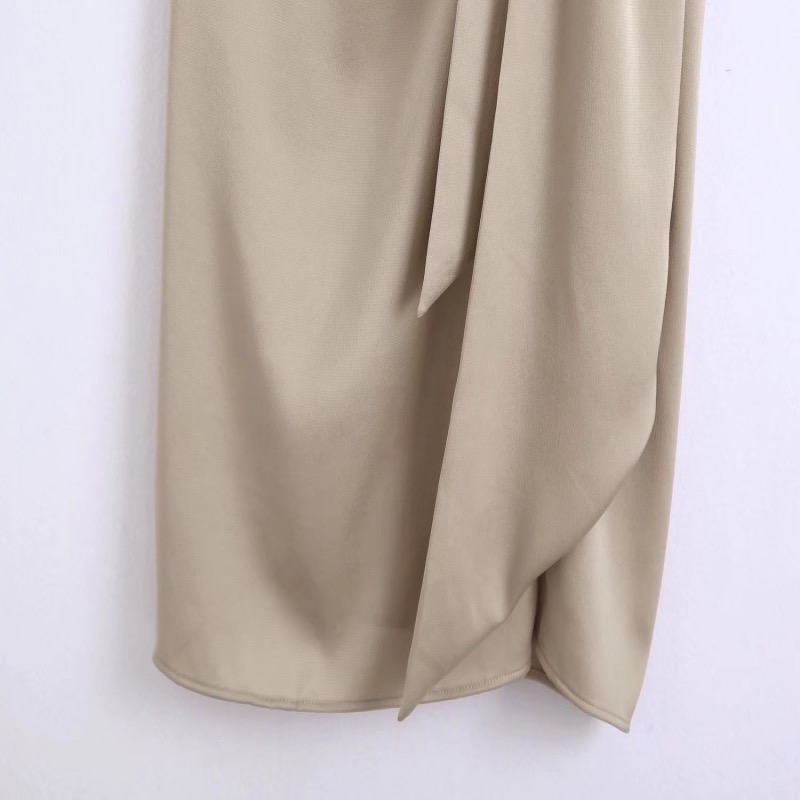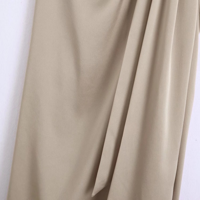 Women Spring Summer Knot Design High Waist Midi Skirt Asymmetric Side Split Hem Slimelegant/Trendy Skirts