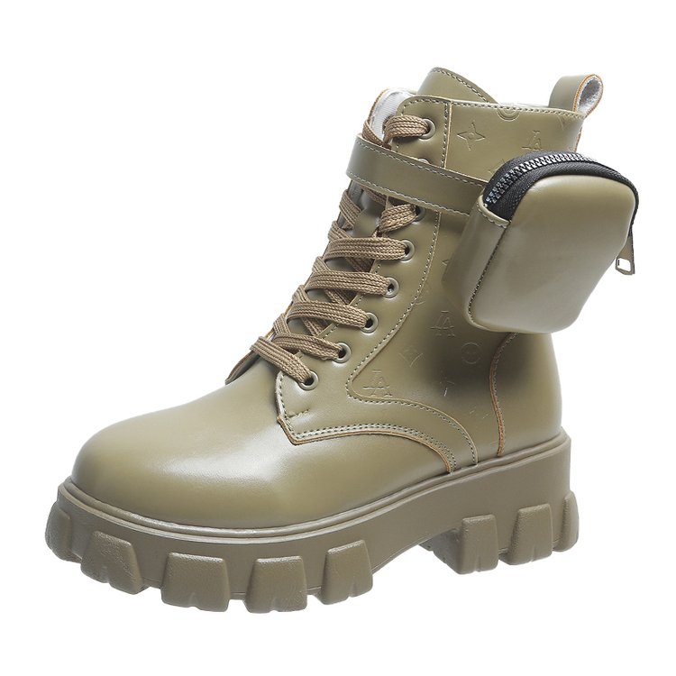 Women Thick-Soled Leather Boots Casual Women Boots Women Lace-Up High Boots Nylon pouch heels flats booties
