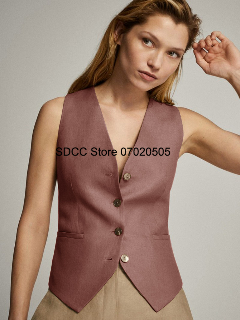Women's Vest Casual Slim Fit Solid Color V-Neck Linen Sleeveless Jacket Single Breasted Coats