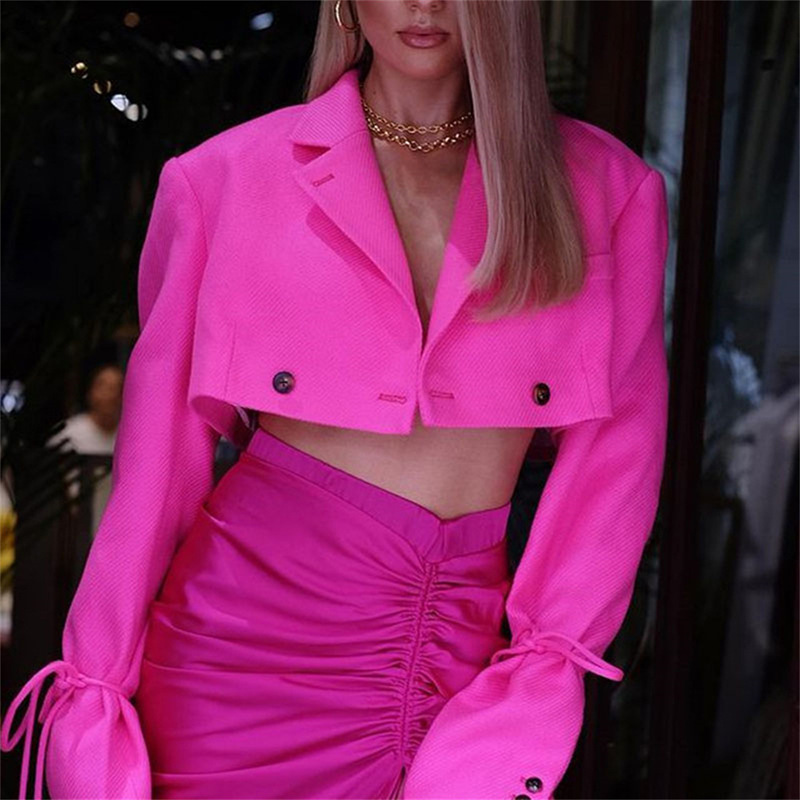 Yimunancy Women Blazer V Neck Long Sleeve Cropped Blazer Autumn Chic Button Lace Up Turn-down Collar Outwear