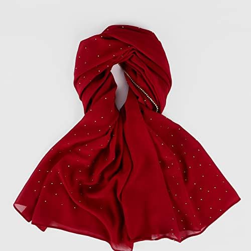 ABAFIP Women Chiffon Hijab Muslim Head Wrap Scarves Rhinestone Long Scarf Pashminas Shawls Solid Wraps Under Scarf